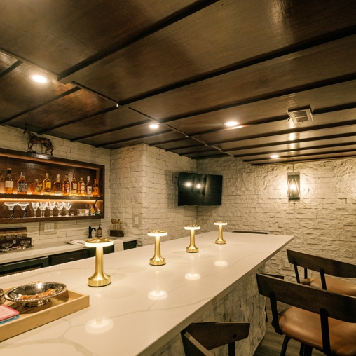 Transform your basement into a cozy retreat where the whole family can spend quality time together. Whether it’s a space for movie nights with a large-screen TV and comfy seating or an open area for kids to play, we design flexible layouts that are inviting and suited to your lifestyle. Add features like built-in shelving for games and books or durable flooring to accommodate everyday wear and tear.